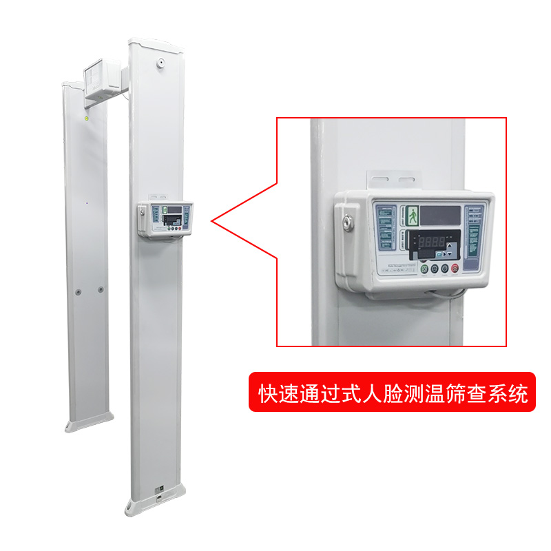 人體測溫安檢門一體機II型遠距離高精度人體測溫安檢門,集帶人體溫度檢測和金屬探測為一體的安全檢測門,門頭裝有高精度的體溫檢測探頭,探測角度可以上下移動, 能夠測量人體額頭的表面溫度,然后根據(jù)人體額頭的溫度與體溫的關(guān)系得到人體的實際體溫。檢測儀的光學(xué)組件將額頭發(fā)射和反射的能量匯集到傳感器上,通過電子組件將此信息轉(zhuǎn)化成溫度讀數(shù)并顯示在顯示面板上,當(dāng)溫度讀數(shù)超過高溫報警值時,儀器會發(fā)出報警聲.報警溫度可隨意設(shè)置.具有防水、防火、防腐等特點。適用于管制刀具和槍支等危險品的安全檢查,廣泛應(yīng)用于適用于機場,車站,出入境檢查站,等人員密集場所。是防止疫情擴散的有效手段。